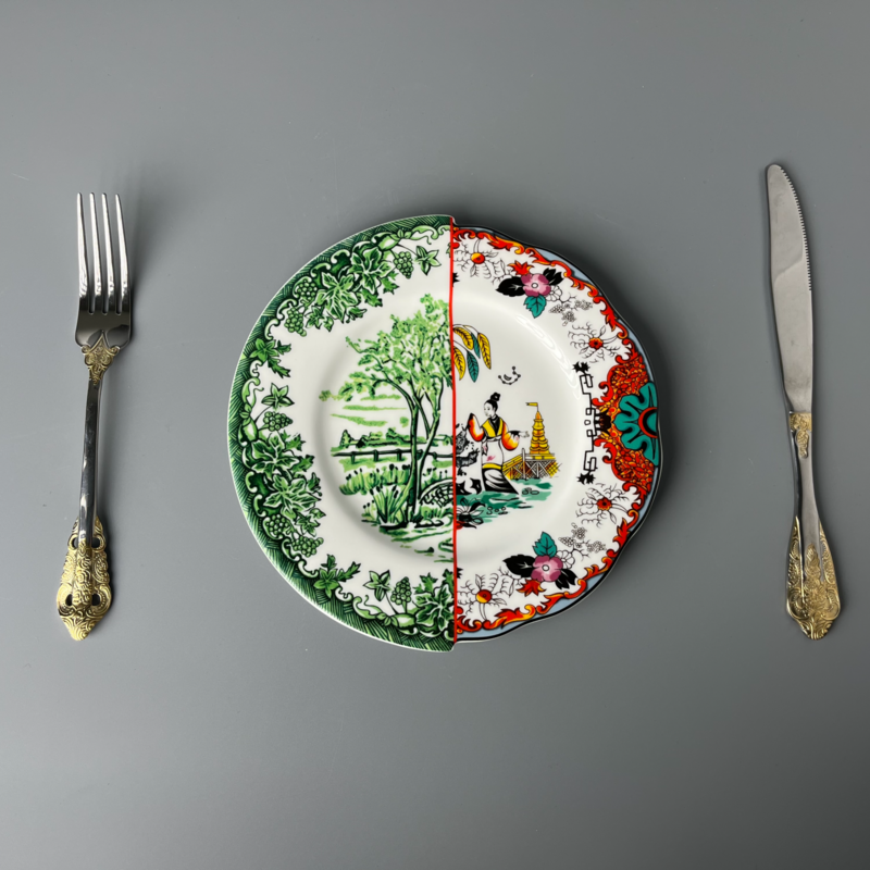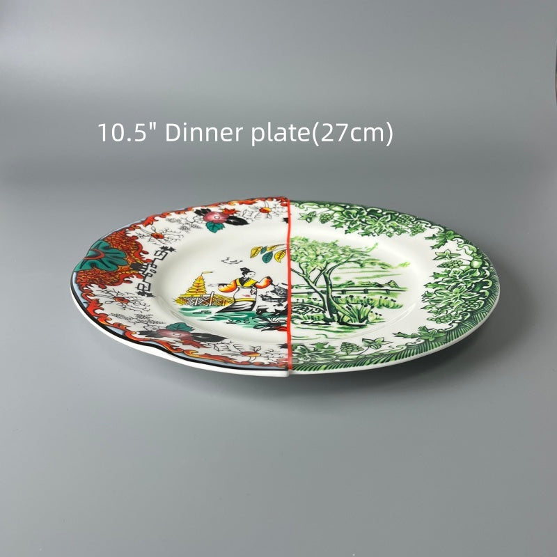 The overall pattern breaks the convention. By boldly combining two distinct styles on one plate, it not only showcases the integration of diverse cultures but also highlights unique artistic creativity, which is truly eye - catching.